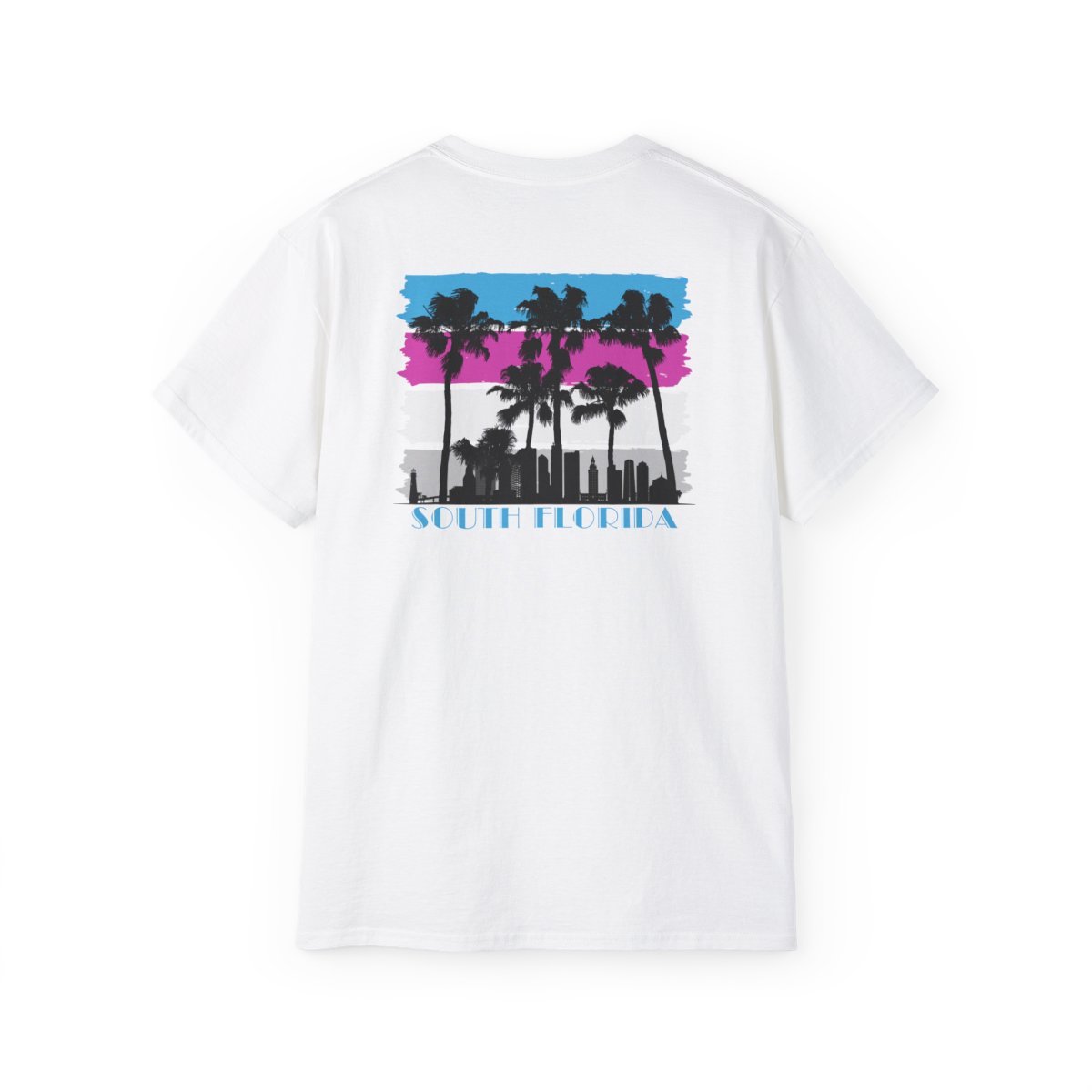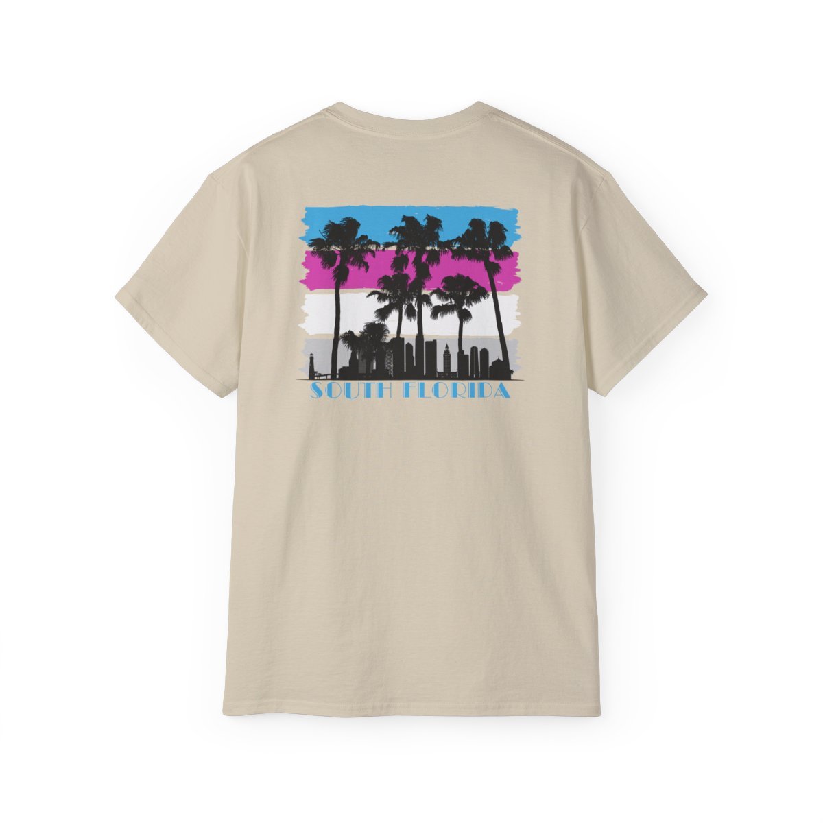 A shirt that shows pride of being born and raised in South Florida. The perfect attire for anyone living in Miami Dade, Broward or Palm Beach county. This unisex tee is designed for adults and made with environmentally-friendly cotton for a thicker vintage feel. It runs bigger than usual for extra comfort and is suitable for everyday wear, blending in any setting for casual or semi-formal occasions.